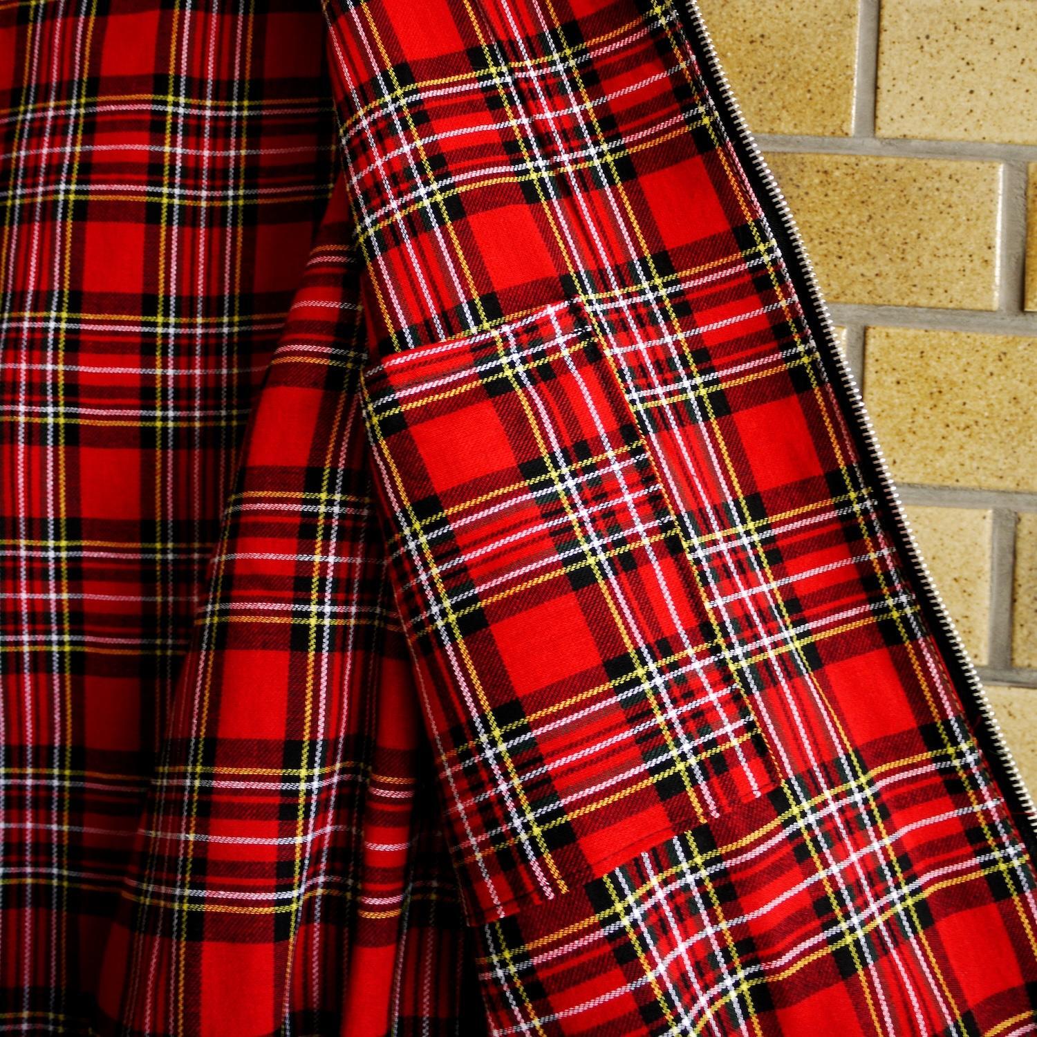 窮屈すぎないリブ周り、赤色を基調としたタータンチェックの裏地が仕様となっています。
