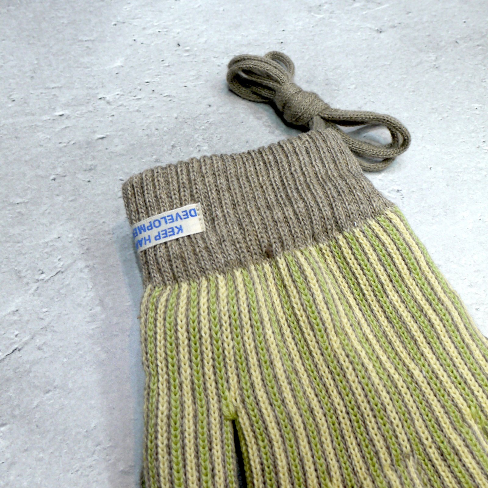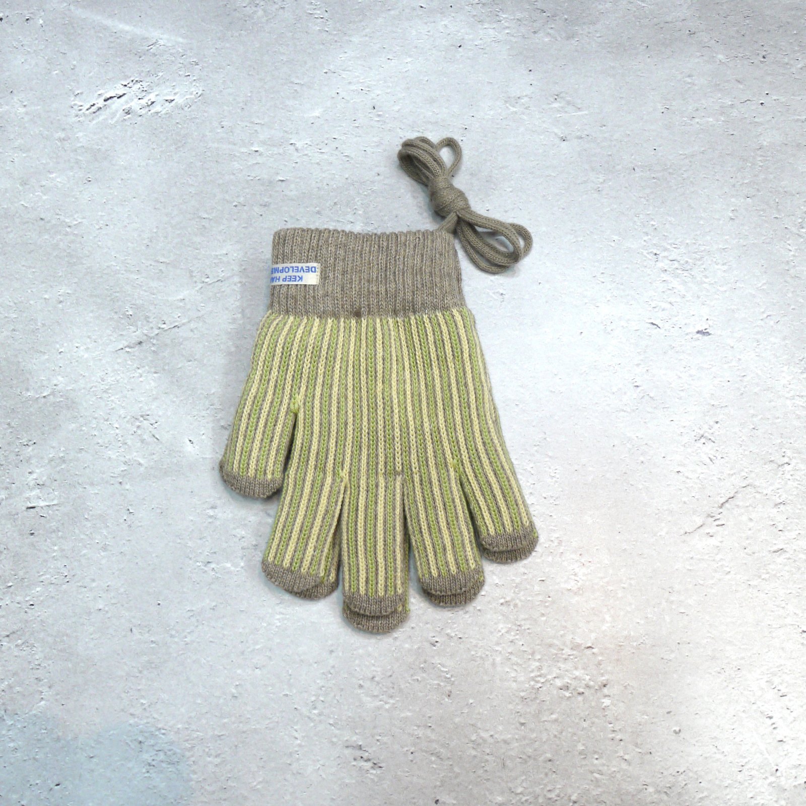 アップサイクルウールと廃棄ペットボトルを利用したリサイクルアクリルの糸を使用した手袋。