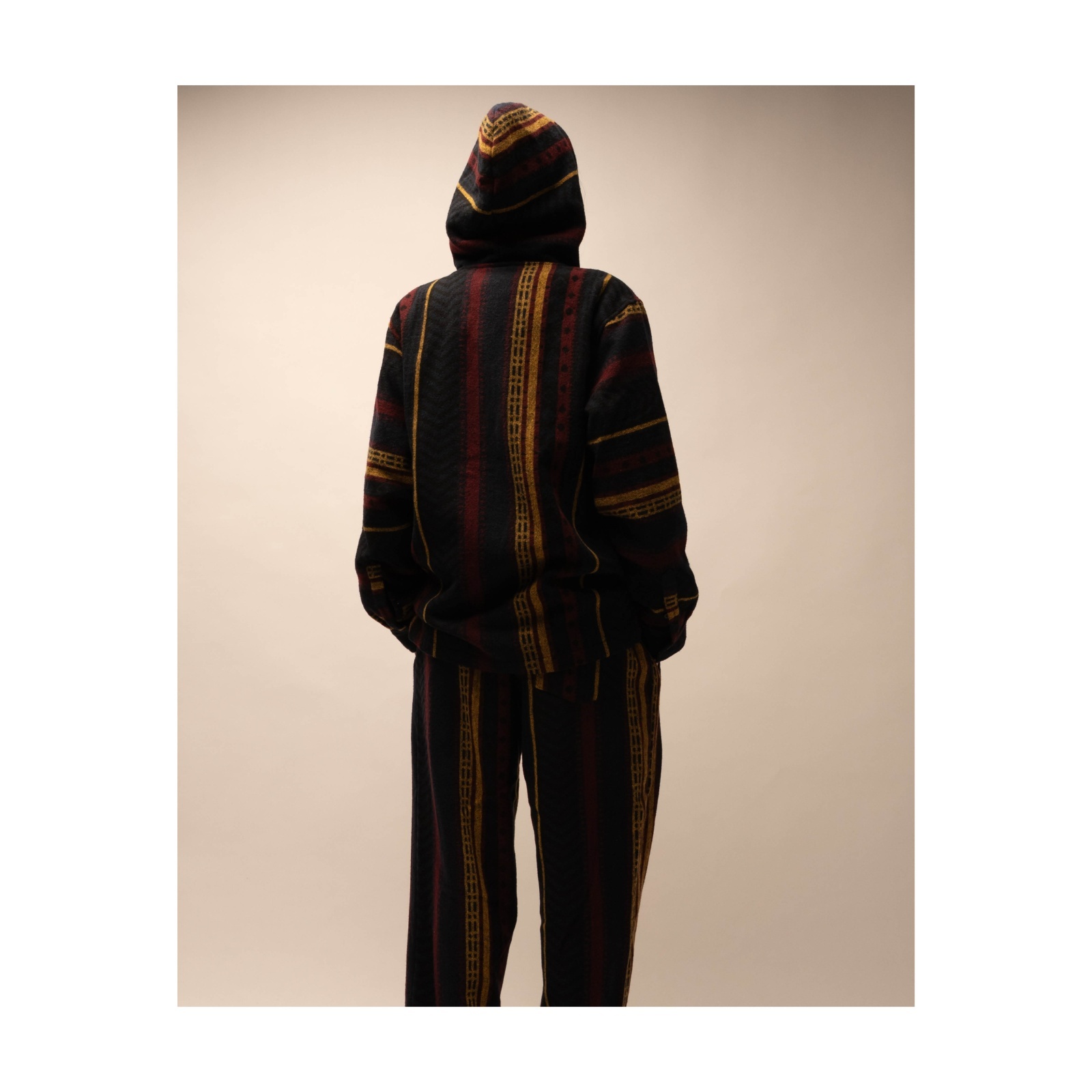 伸縮性のある、遊牧民を彷彿とさせる伝統的なスタイルが使用された生地で製作されています。