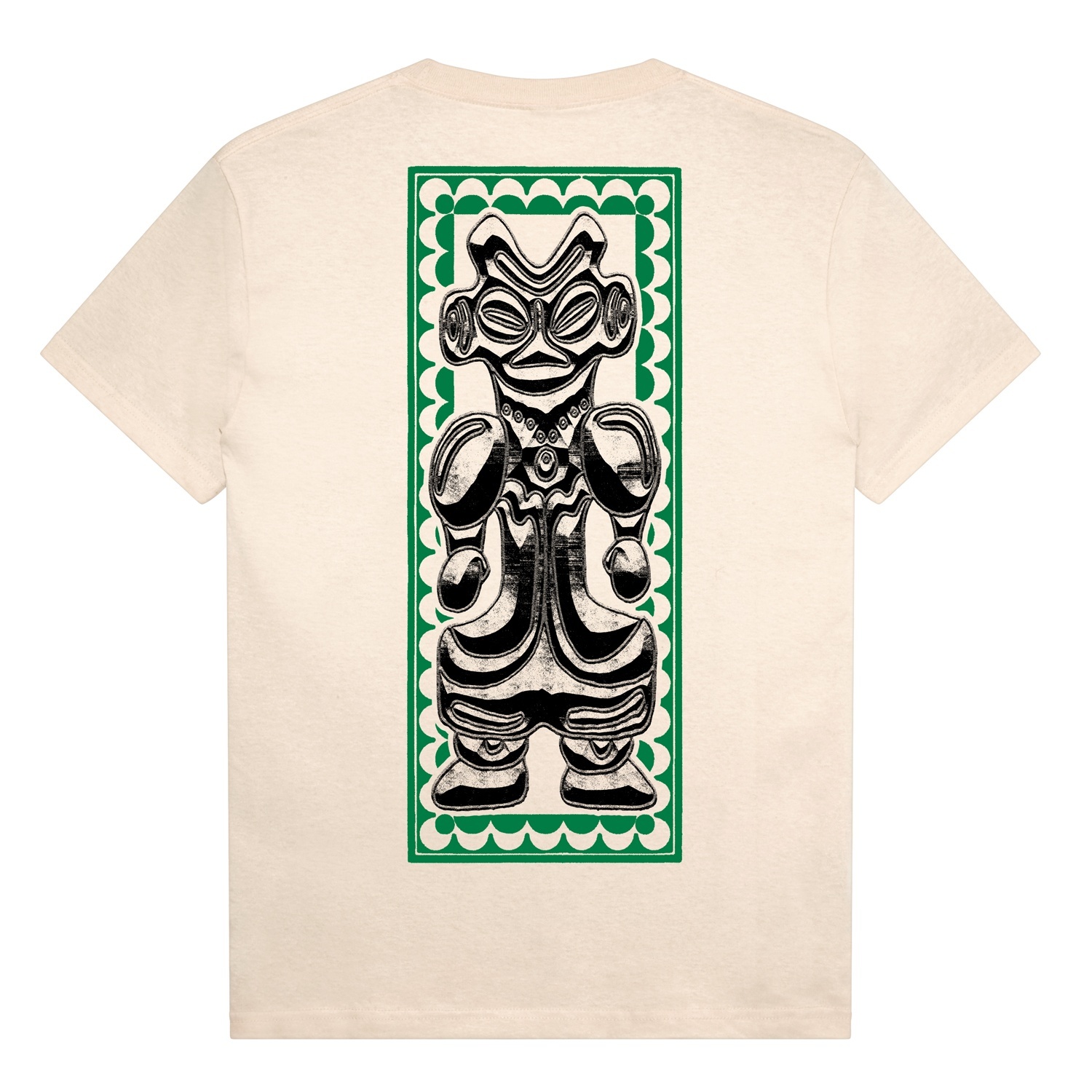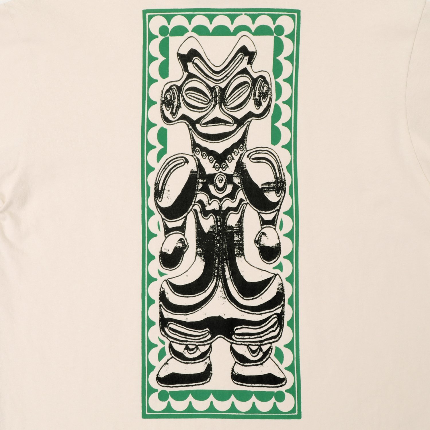 前面・背面に縄文時代 土偶モチーフのグラフィックが配置されています :)