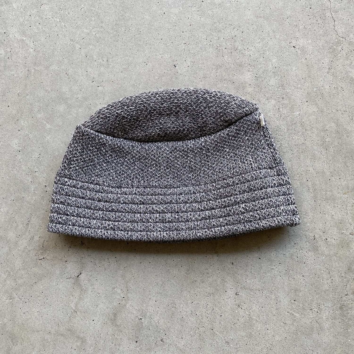 和紙,ポリエステル,ナイロンをブレンドしたシャリ感ある糸を2色混ぜ撚った定番ニットバケットハット