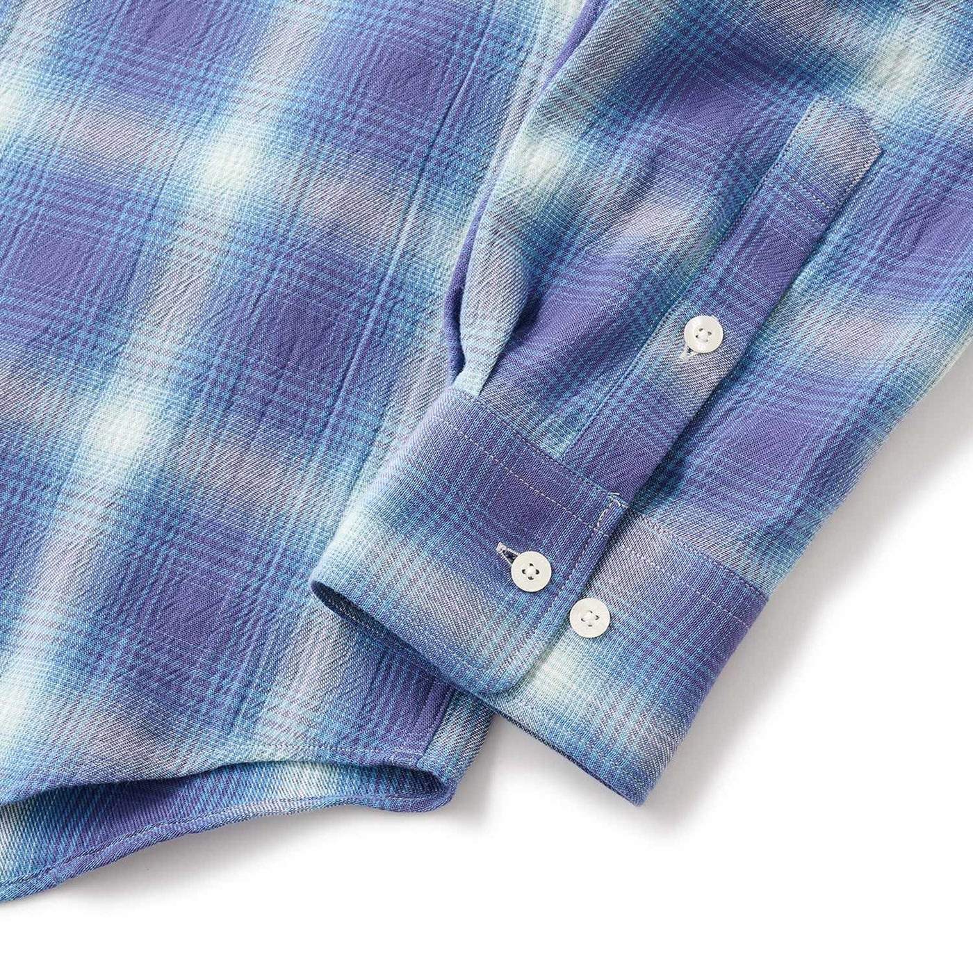 ウォッシュド加工が施されたオンブレーチェックを使用したシャツ。