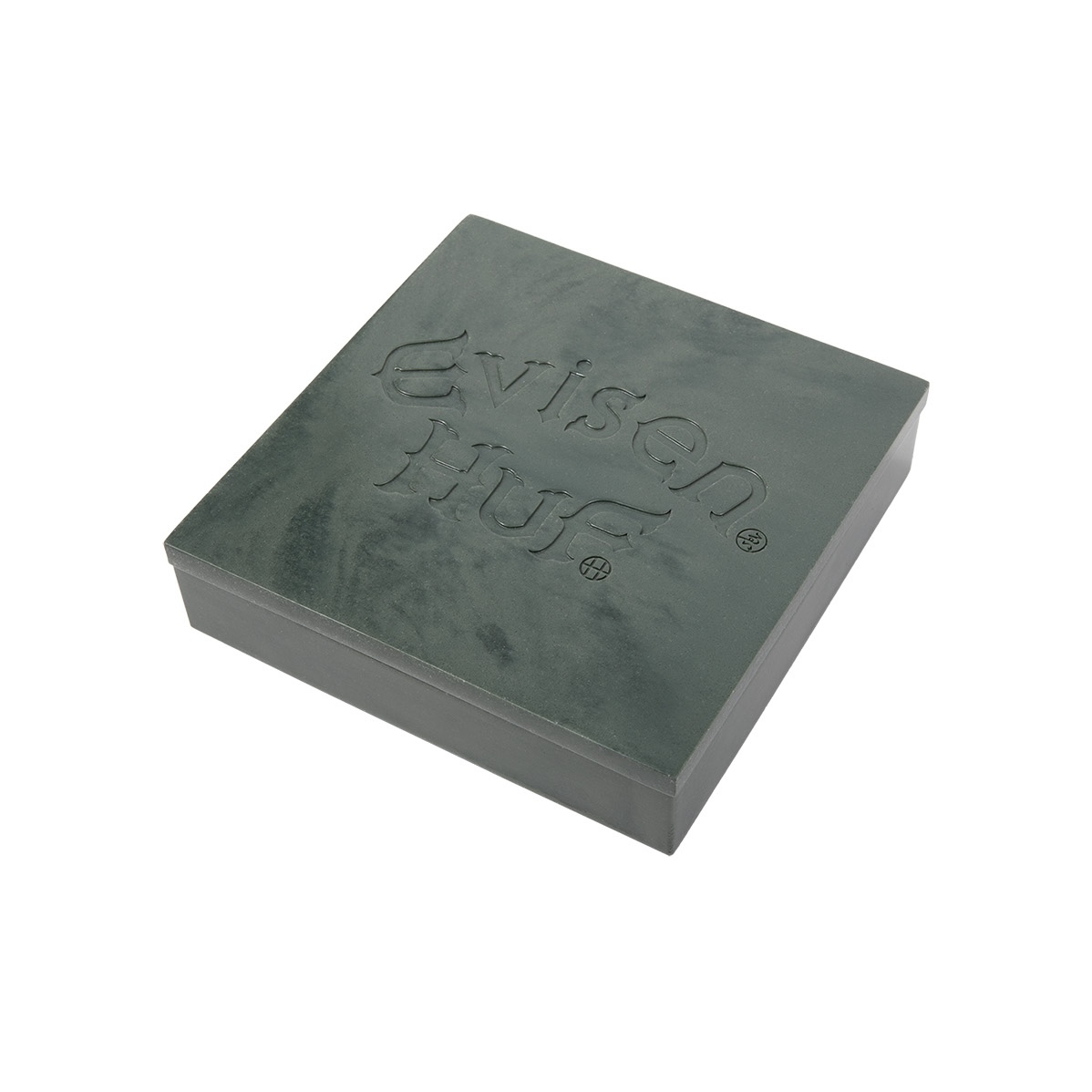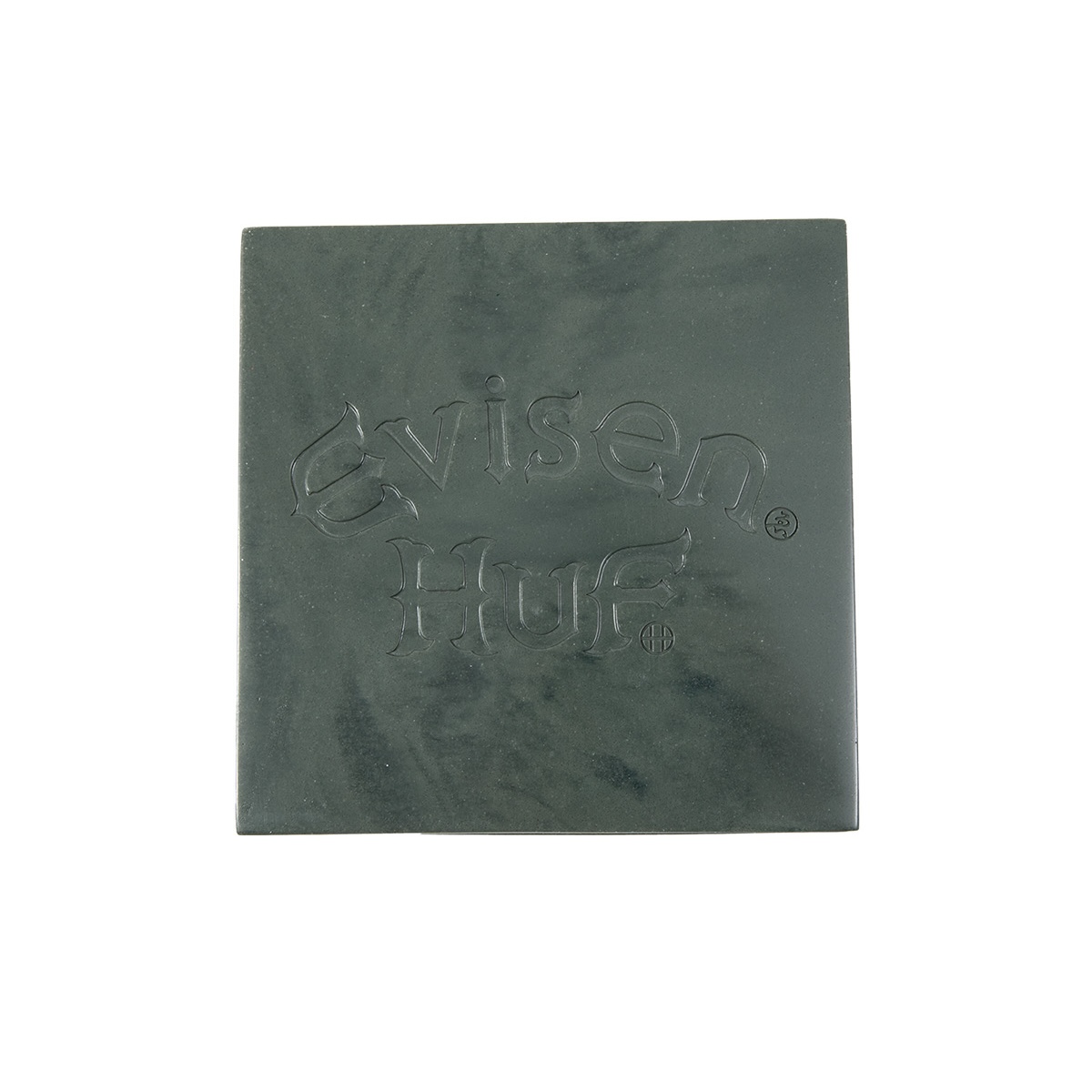 ・大理石のような質感を持ち、蓋の中央にはHUF X EVISENのグラフィックをデボス加工で立体的に表現。