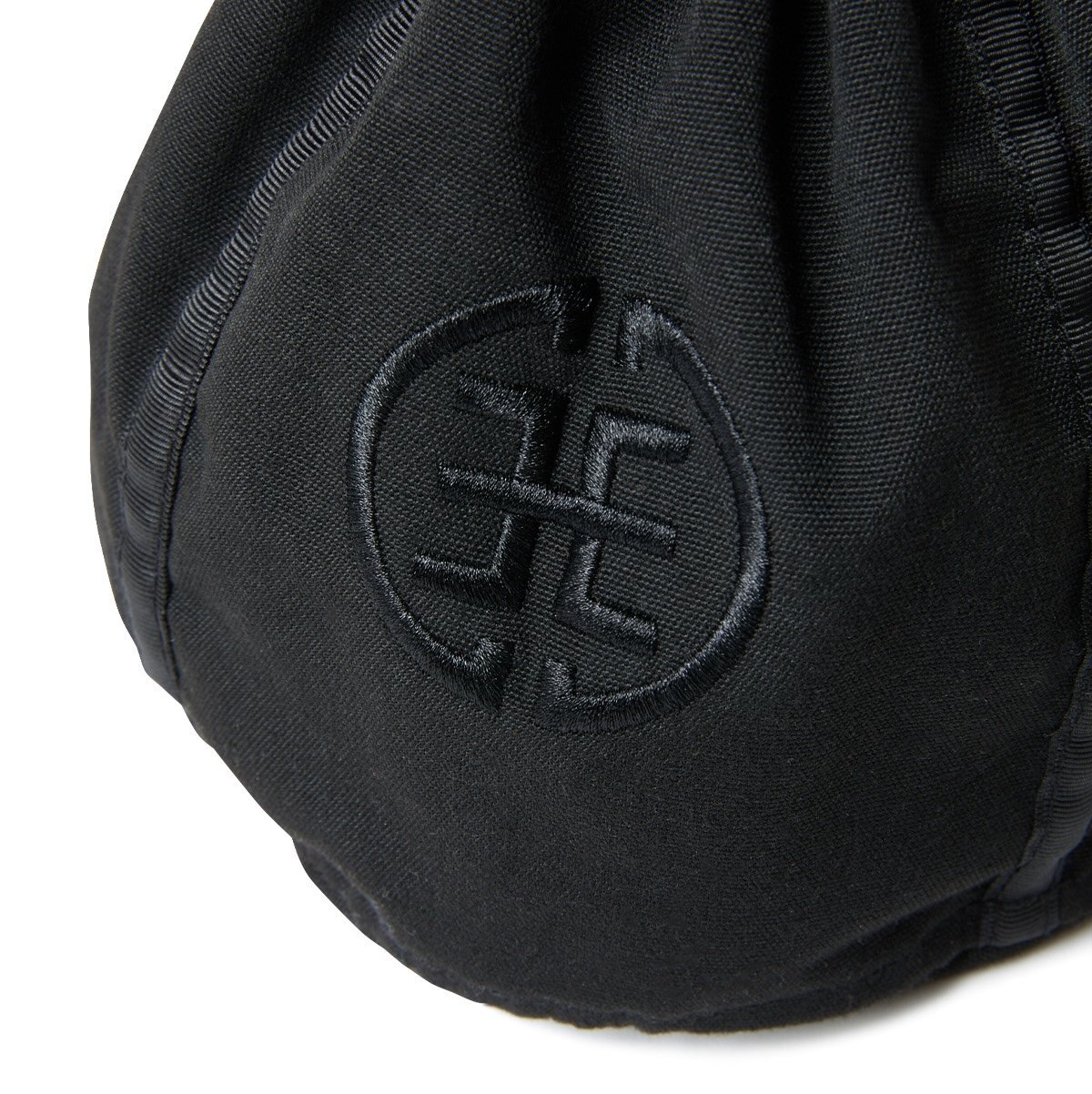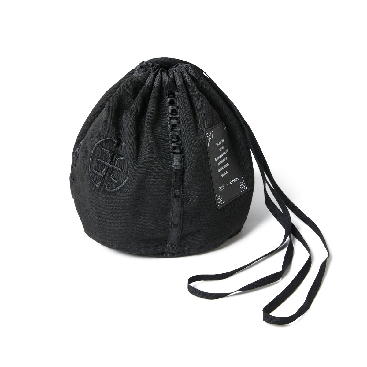 表地にコットンキャンバス、裏地にリップストップナイロンを使用した巾着バッグ。