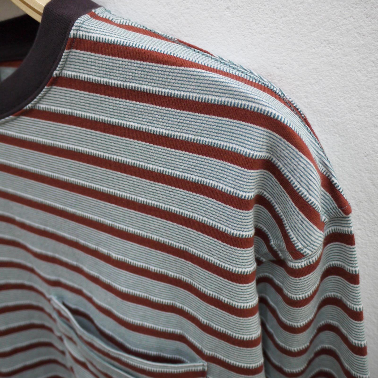 タンブラーをかける事で偶然生まれるカットソーとジャガードの縮率差による不均一な凹凸が特徴。
