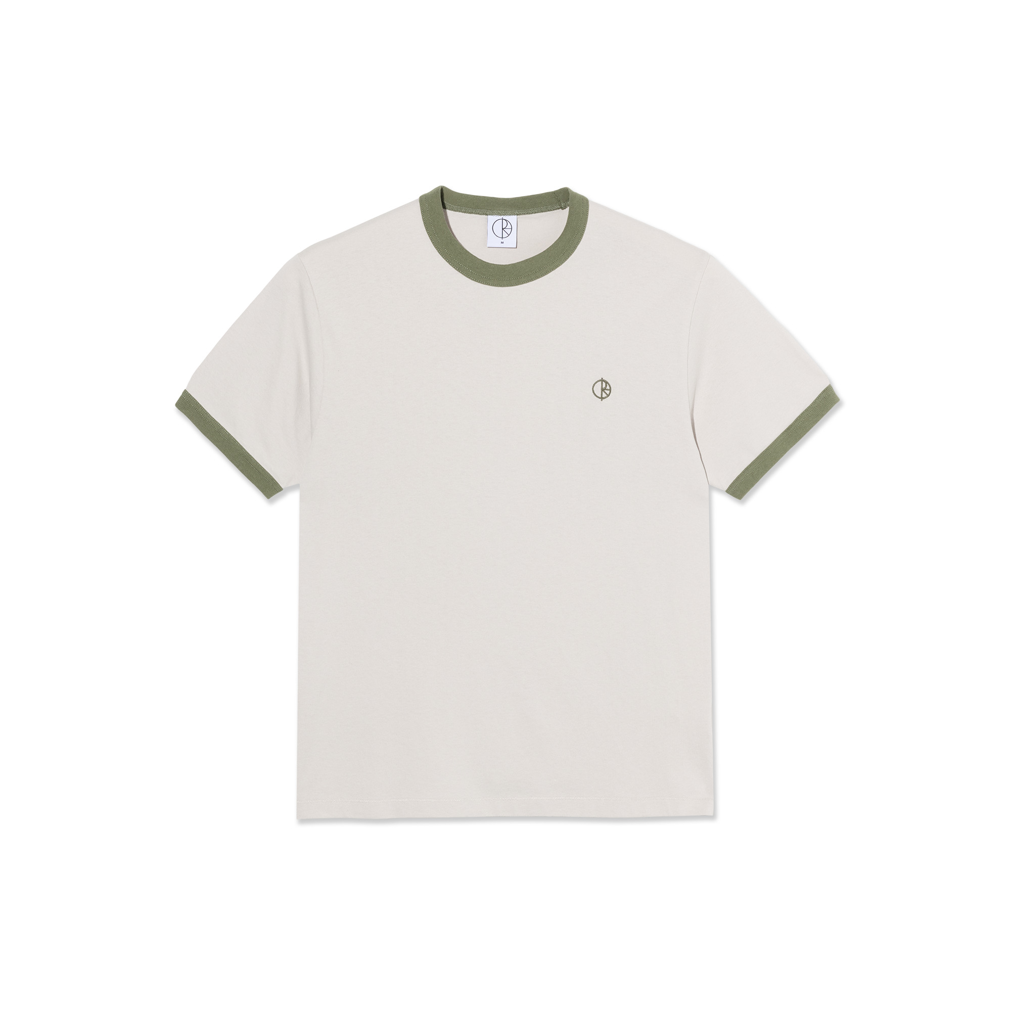 POLAR SKATE CO. " RINGER TEE " - PALE TAUPE / ARMY GREEN