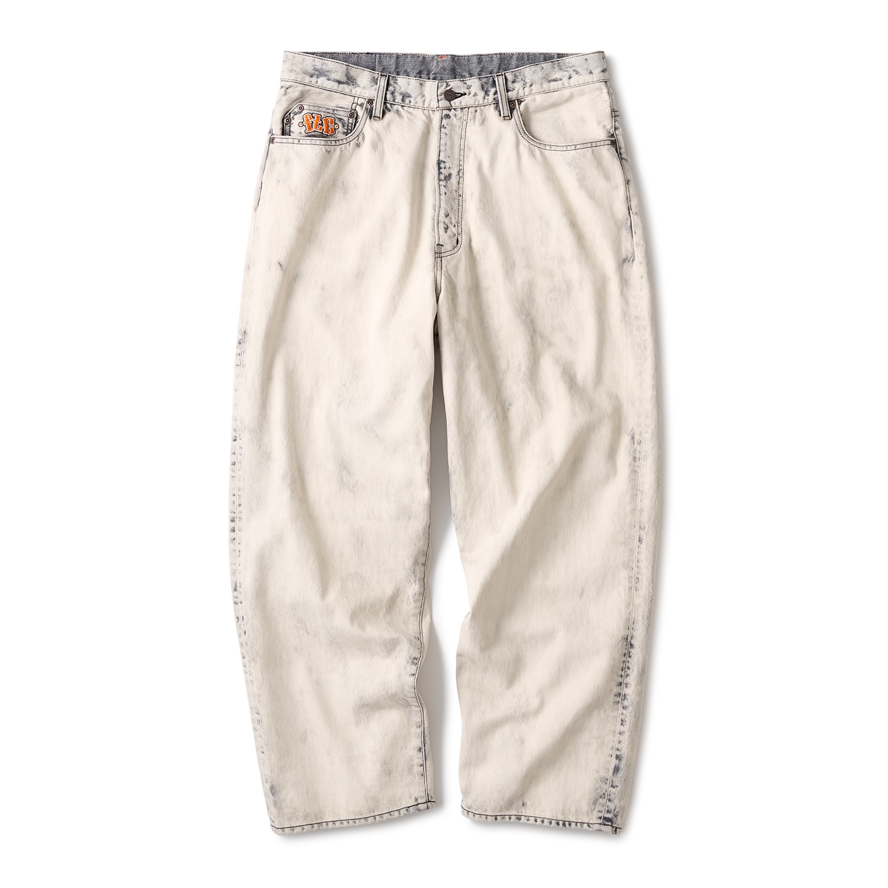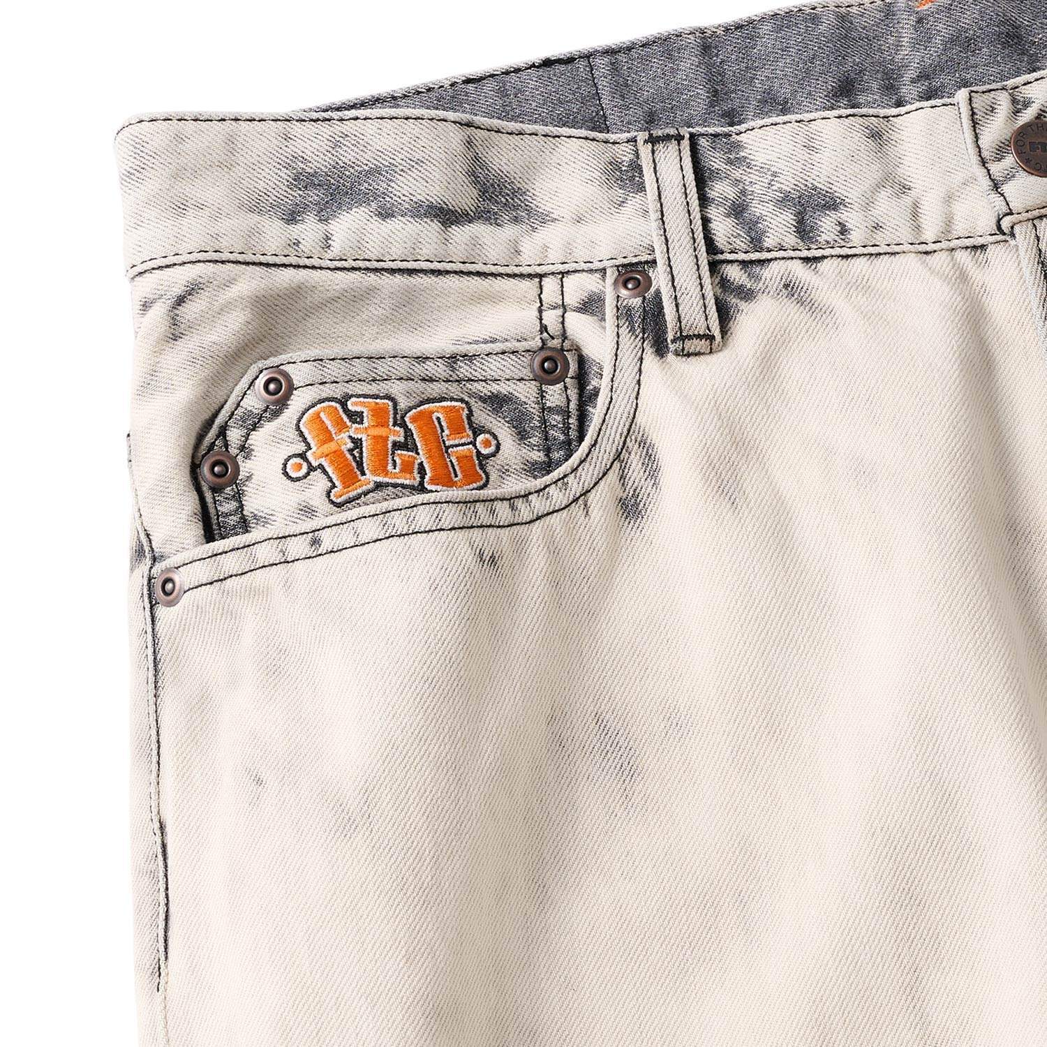 ジッパーフライ。コインポケットに刺繍。ポケットスレキにプリント。オリジナルネオバーボタン。