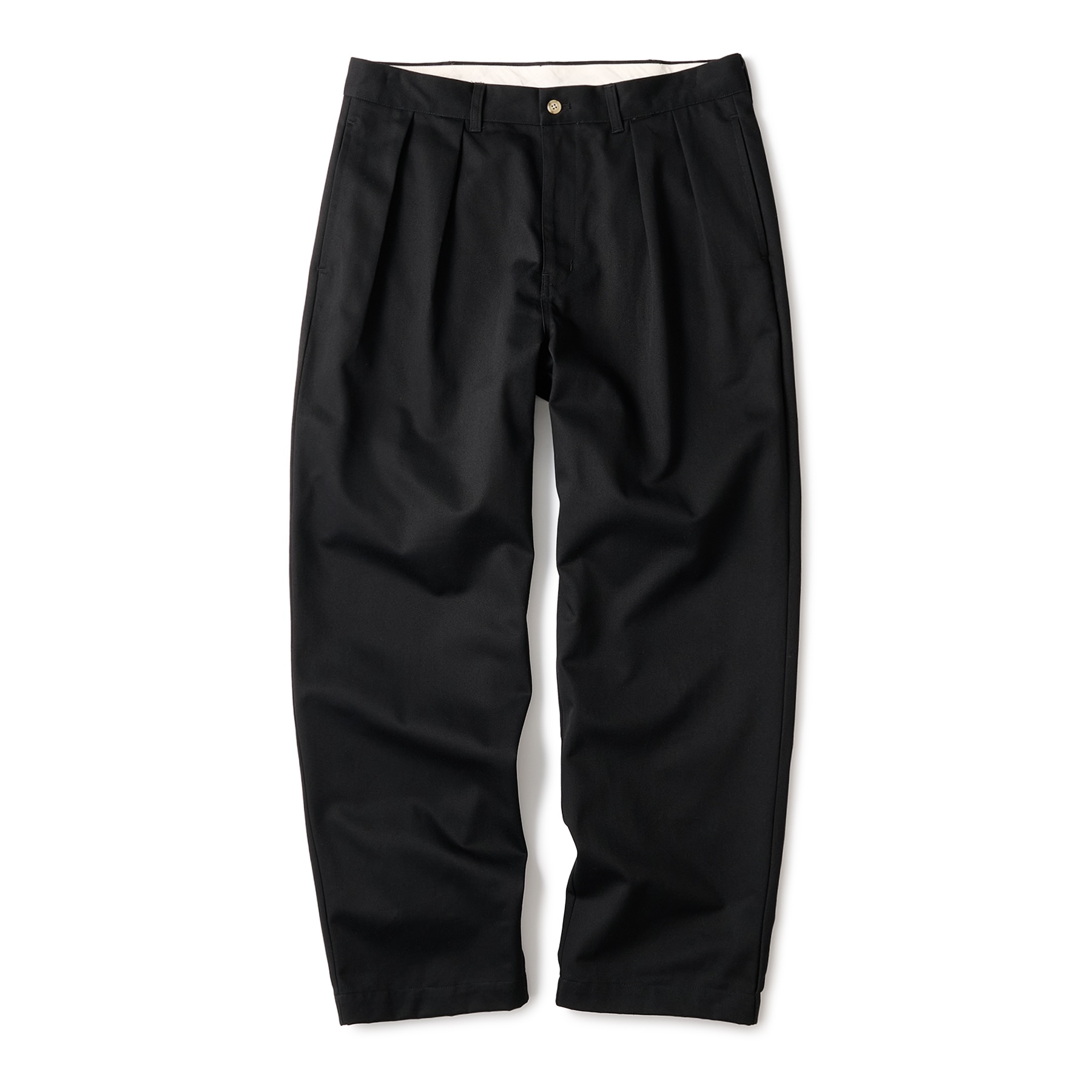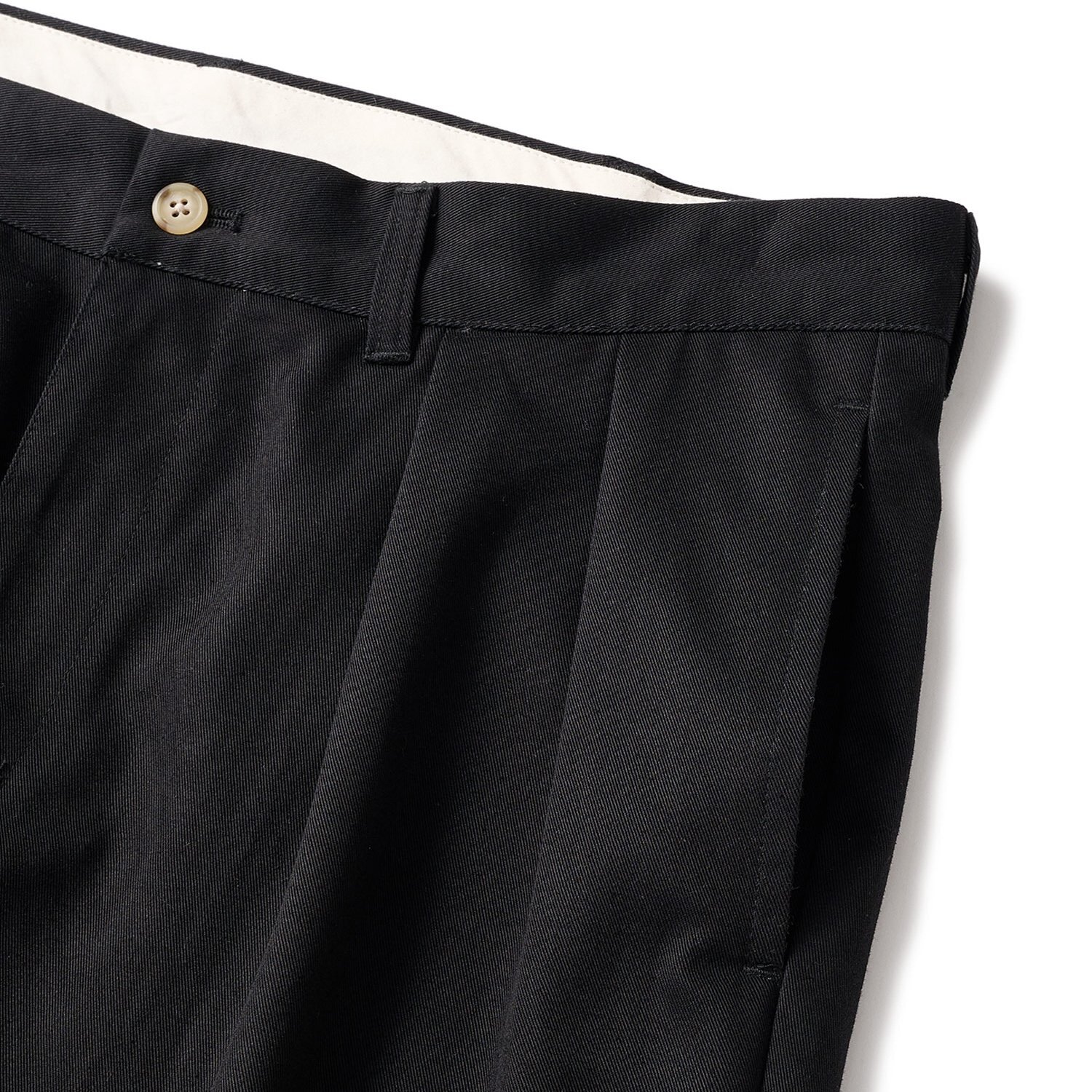 肉厚のコットンチノを使用したタック入りスラックスパンツ。