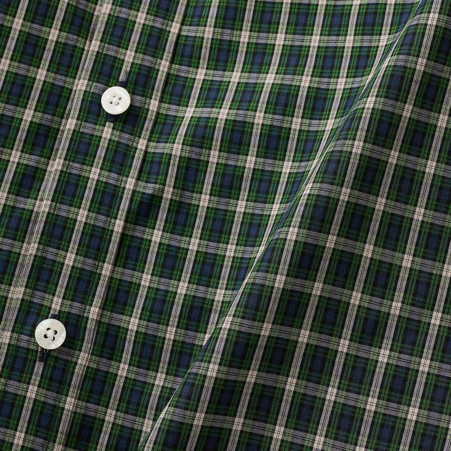 コットンチェックを使用した半袖シャツ。バックヨークにハンガーループ。